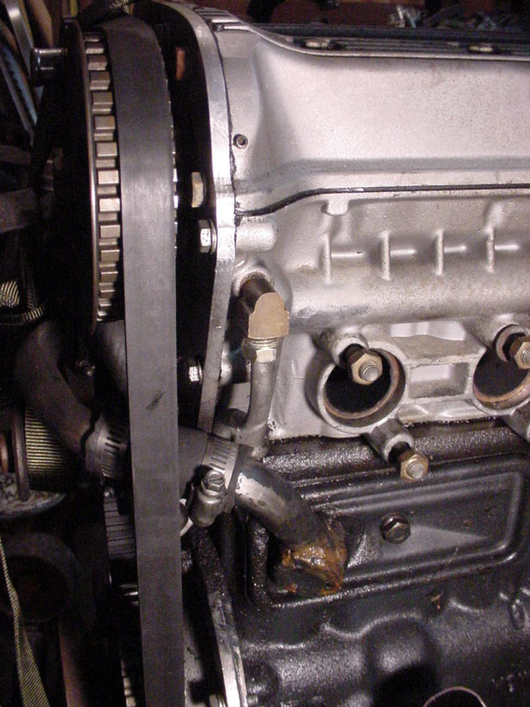 b. Detail showing external oil pressure feed to head and return drain to tappet cover